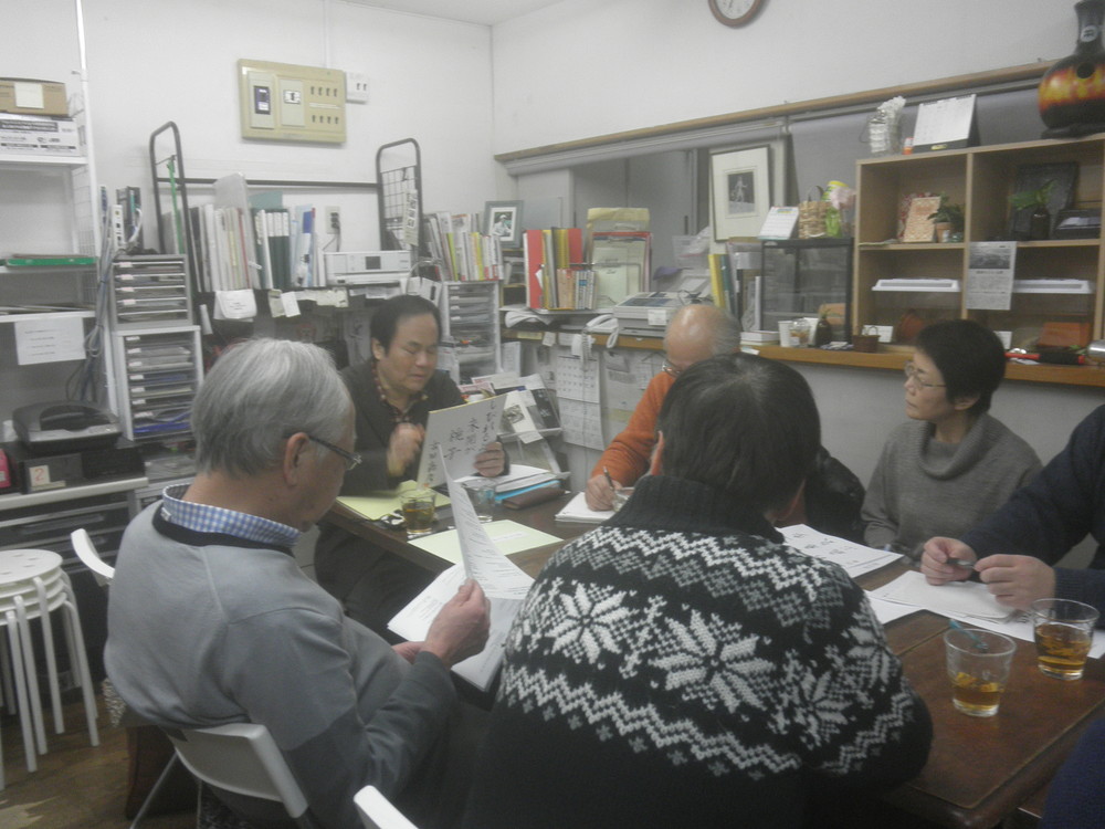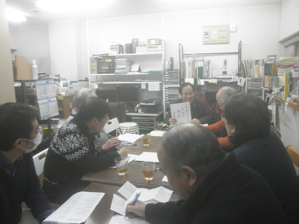 臨時吟遊同人総会・色紙揮毫説明会・吟遊新年会 2017-01-22イヴェント喜屋武元貴 出席者名簿 2017年1月22日(日) 臨時吟遊同人総会・色紙揮毫説明会 午後2時~午後6時 七月堂 石倉秀樹 古田嘉彦 大里満紀 木村聡雄 渡邉しゅういち 長谷川破笑 山本一太朗 鎌倉佐弓 夏石番矢 以上9名 吟遊新年会 午後2時~午後6時 栄新楼 石倉秀樹 古田嘉彦 渡邉しゅういち 長谷川破笑 山本一太朗 鎌倉佐弓 夏石番矢 以上7名